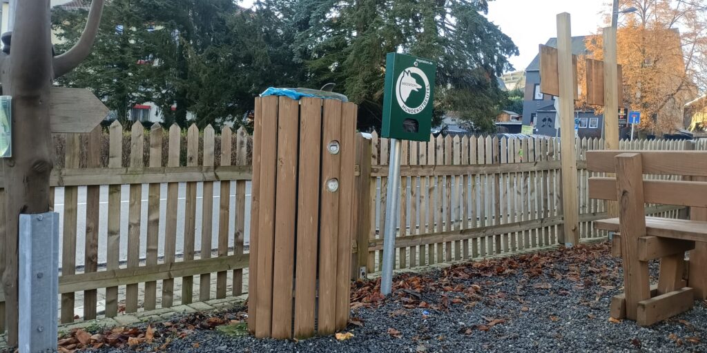 in den zurückliegenden drei Jahren haben wir schrittweise innerhalb des Gemeindegebietes an unterschiedlichen Stellen Hundekotbeutelspender mit den dazugehörigen Mülleimern aufgestellt.