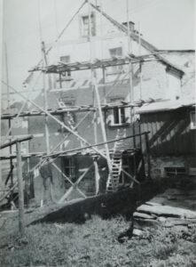 Alfred Turschner bei Fassadenarbeiten des hinteren Anbaus