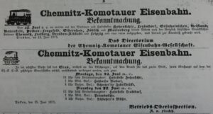 Werbeanzeige der Chemnitz-Komotauer Eisenbahngesellschaft 1875
