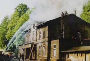 14. Juni 1991 Brand des Dachstuhls des Bahnhofsgebäudes: