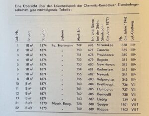 Lokomotivpark der Chemnitz-Komotauer Eisenbahngesellschaft; Quelle: Festschrift 100 Jahre Flöhatalbahn